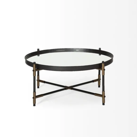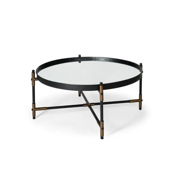 Kirkland’s Home Coffee Tables-Bronze And Onyx Mirror Top Round Coffee Table