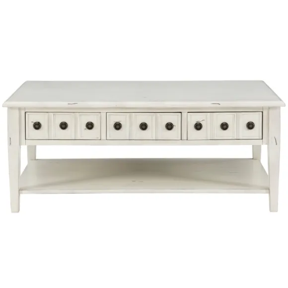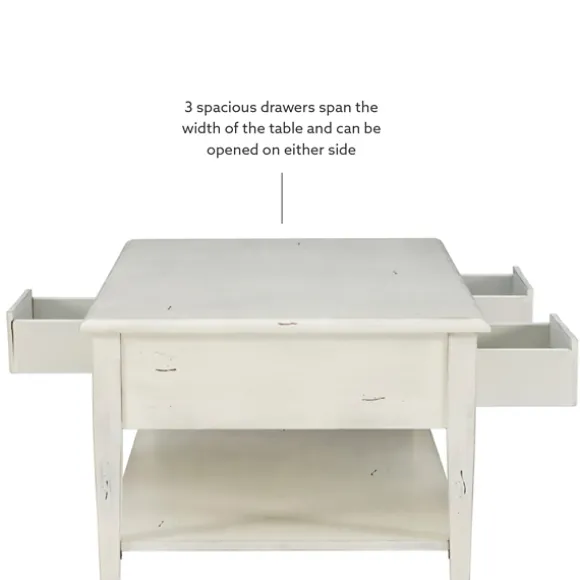 Complete Your Cozy Living Room Lounge Space With This Distressed Cream Wood 3-Drawer Coffee Table! This Charming Statement Piece Will Perfectly Fit In Any Rustic Setting. Table Measures 47.75L X 28W X 20H In.Crafted Of Wood Composite, Rubberwood, Hardwood, And Metaldistressed Cream Finishfeatures Three (3) Drawersaccented With An Open Bottom Shelfdetailed With Round Metal Drawer Pulls In An Antique Bronze Finishtabletop Weight Capacity: 400 Lbs.Shelf Weight Capacity: 100 Lbs.Drawer Weight Capacity: 10 Lbs. Eachassembly Requirednot Intended For Commercial Usecare: Dust With A Soft, Dry Cloth.This Item Is Available At Kirklands.Com Only, Not Available In Stores. Please Note: This Item Cannot Be Shipped To Apo/Fpo Addresses.Warning:This Product Can Expose You To Chemicals Including Dehp Which Is Known To The State Of California To Cause Cancer And Birth Defects Or Other Reproductive Harm.For More Information Go Towww.P65Warnings.Ca.Gov .