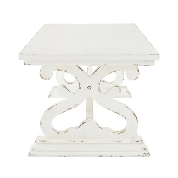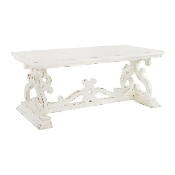 Kirkland’s Home Coffee Tables-Distressed White Scrollwork Base Coffee Table