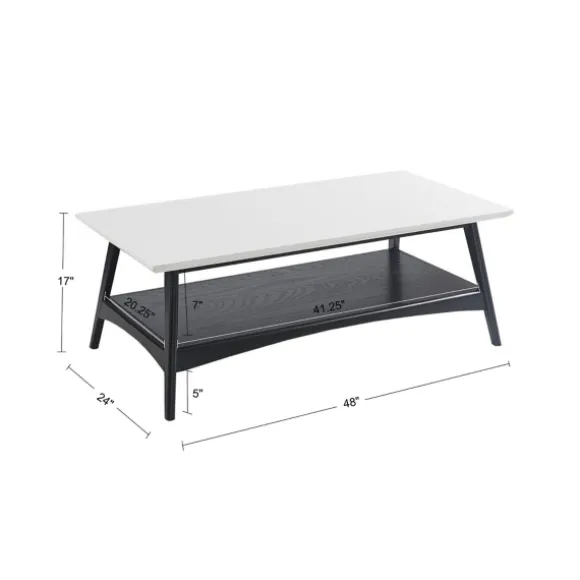 Elevate The Elegance Of Your Living Room! Our Ellis Black And White Wood Coffee Table Offers Lots Of Storage Space And A Modern Design That’S Perfect For Your Updated Decor Style. Table Measures 48L X 24W X 17H In.Crafted Of Wood And Wood Compositesolid Wood Frame With Wood Composite Topblack Frame Finishsleek White Tabletopbottom Shelf Crafted Of Wood Composite With Solid Wood Veneerspace Between Bottom Shelf And Floor Measures 5H In.Weight Capacity: 85 Lbs.Assembly Required; Tools Includednot Intended For Commercial Usecare: Dust With A Soft, Dry Cloth. Use Coasters, Placemats Or Trivets To Help Prevent Marks Or Stains.This Item Is Available At Kirklands.Com Only, Not Available In Stores. Please Note: This Item Cannot Be Shipped To Apo/Fpo Addresses.