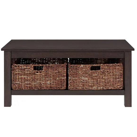 Add A Bit Of Extra Storage To Your Space With Our Espresso Traditional Wooden Basket Coffee Table. Stow A Blanket Or Last Season’S Cookbook In Its Convenient, Woven Baskets. Meanwhile, Its Classic Tabletop Finish Will Complement A Caged Lantern Or Two!Table Measures 40L X 22W X 18H In. Crafted Of Warp-Resistant Wood Composite, Durable Laminate, And Wicker Espresso Finish Features Two (2) Wicker Baskets Accented With Open Slatted Sides Full Assembly Required Care: Dust With A Soft, Dry Cloththis Item Is Available At Kirklands.Com Only, Not Available In Stores. Please Note: This Item Cannot Be Shipped To Apo/Fpo Addresses.