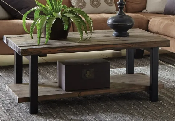Tie Your Living Room Together With This Brown Pine Wood And Metal Coffee Table. The Simple, Rustic Style Will Go Great W…