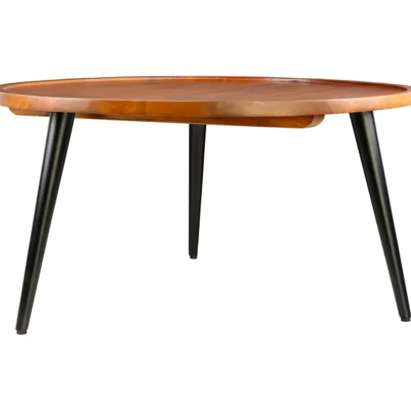 This Round Brown Wood And Metal Coffee Table Will Complete Your Living Room. The Rich Wood Finish And Black Metal Accents Will Look Beautiful With Any Decor. You’Ll Love How It Ties Your Space Together! Table Measures 15.7H X 36 In. In Diametercrafted Of Wood And Metalbrown Tabletop Finishblack Leg Finishround Shapesome Assembly Requirednot Intended For Commercial Usecare: Dust With A Soft, Dry Cloth.This Item Is Available At Kirklands.Com Only, Not Available In Stores. Please Note: This Item Cannot Be Shipped To Apo/Fpo Addresses.