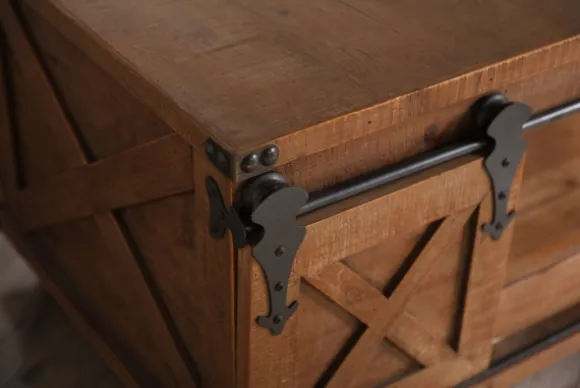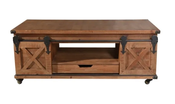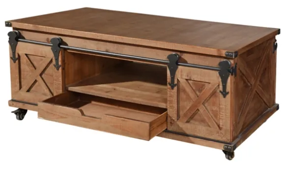 This Rustic Fir Wood Rolling Barn Door Coffee Table’S Distressed Finishes And Industrial Style Will Give Your Living Room An Instant Vintage Makeover. It’S The Perfect Way To Achieve A Truly Rustic Feel!Table Measures 47L X 24W X 18H In.Crafted Of Wood And Metalnatural Fir Wood Finishfeatures Two (2) Drawers, Two (2) Doors, And One (1) Shelf For Storagedrawer Fronts Feature Rolling Barn Door Designfeatures Casters For Rollingweight Limit For Overall Table: 250 Lbs.Interior Shelf Weight Limit: 100 Lbs.Not Intended For Commercial Usecare: Dust With A Soft, Dry Cloth.This Item Is Available At Kirklands.Com Only, Not Available In Stores. Please Note: This Item Cannot Be Shipped To Apo/Fpo Addresses.