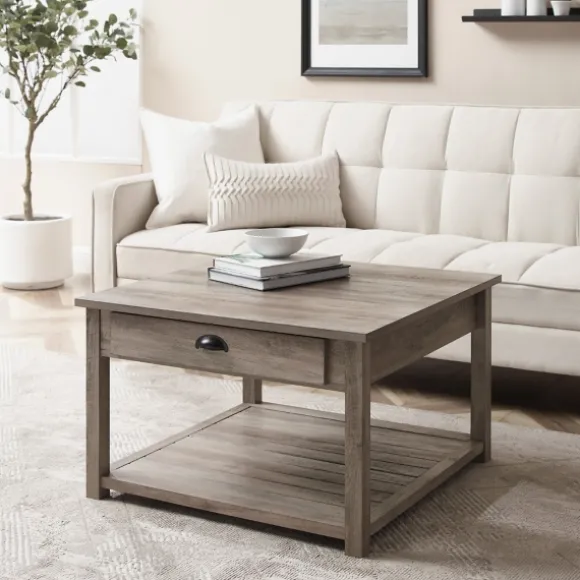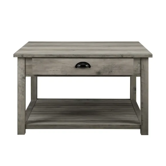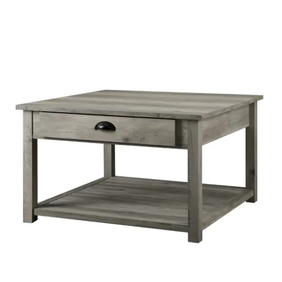 Update Your Farmhouse Inspired Living Or Bonus Room With Our Gray Wash Square Coffee Table! The Drawer And Bottom Shelf …