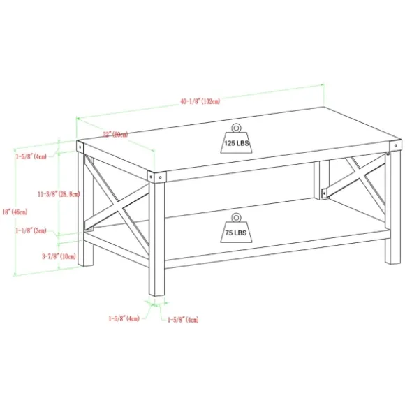 Complete The Look Of Your Rustic Living Room Our Wenge Brown X-Frame Coffee Table! You’Ll Love How The Matte Black Steel Accents Bring Your Farmhouse Style Together. Coffee Table Measures 40L X 22W X 18H In.Crafted Of Warp-Resistant Wood Composite And Powder Coated Steeldark Gray-Brown Finish With Matte Black Metal Accentsfeatures An X-Frame Side Designincludes A Bottom Shelftop Weight Capacity: 125 Lbs.Shelf Weight Capacity: 75 Lbs.Assembly Requirednot Intended For Commercial Usecare: Wipe With A Soft, Damp Cloth. Not Safe For Outdoor Use.This Item Is Available At Kirklands.Com Only, Not Available In Stores. Please Note: This Item Cannot Be Shipped To Apo/Fpo Addresses.Warning:This Product Can Expose You To Chemicals Including Dust And Phthalates Which Are Known To The State Of California To Cause Cancer And Birth Defects Or Other Reproductive Harm.For More Information Go Towww.P65Warnings.Ca.Gov .
