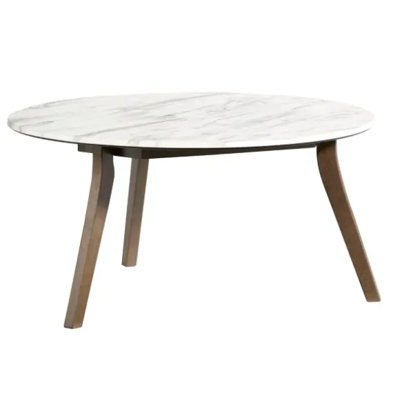 Kirkland’s Home Coffee Tables-White Marble And Wood Round Coffee Table