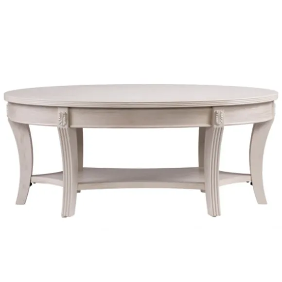 This Whitewashed Wood Oval Coffee Table With Shelf Will Bring Rustic, Elegant Character Into Your Living Room. With Its Saber Legs And Carved Details, It Has A Traditional Look That You’Ll Love! Table Measures 44L X 26W X 18.25H In.Crafted Of Engineered Wood, Ash Veneer, Polyresin, And Poplar Woodwhitewashed Finish With Gray Undertonesdetailed With Saber Legs And Carved Accentsoval Shapeincludes A Bottom Shelftabletop Weight Capacity: 50 Lbs.Shelf Weight Capacity: 20 Lbs.Assembly Requirednot Intended For Commercial Usecare: Dust With A Soft, Dry Cloth.This Item Is Available At Kirklands.Com Only, Not Available In Stores. Please Note: This Item Cannot Be Shipped To Apo/Fpo Addresses.Warning:This Product Can Expose You To Chemicals Including Lead Which Is Known To The State Of California To Cause Cancer And Birth Defects Or Other Reproductive Harm.For More Information Go Towww.P65Warnings.Ca.Gov .