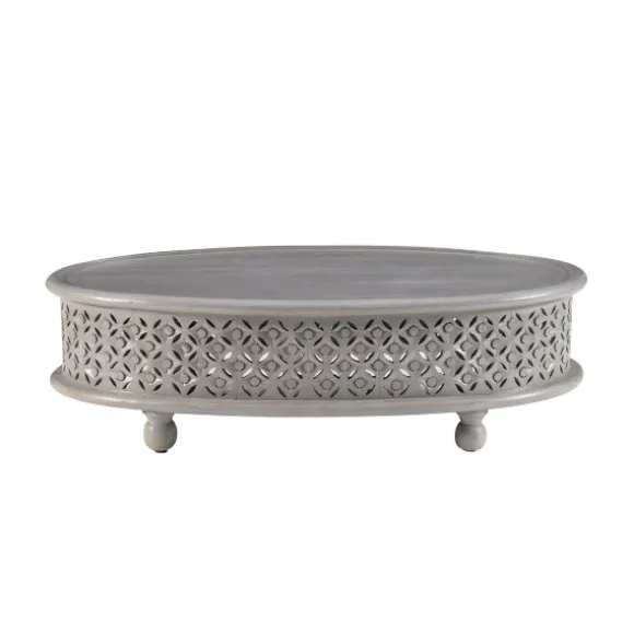 The Gray Wood Carved Medallion Coffee Table Features Intricate Lattice Cutouts That Add Visual Interest To Any Space. The Soft, Oval Shape And Round Feet Make Up Its Charming Character. Table Measures 42L X 23W X 18H In.Crafted Of Mango Woodgray Finishlattice Hand Carved Designoval Shaperound Ball Feetweight Capacity: 45 Lbs.No Assembly Requirednot Intended For Commercial Usecare: Dust With A Soft, Dry Cloth.This Item Is Available At Kirklands.Com Only, Not Available In Stores. Please Note: This Item Cannot Be Shipped To Apo/Fpo Addresses.Warning:This Product Can Expose You To Chemicals Including Dehp Which Is Known To The State Of California To Cause Cancer And Birth Defects Or Other Reproductive Harm.For More Information Go Towww.P65Warnings.Ca.Gov .