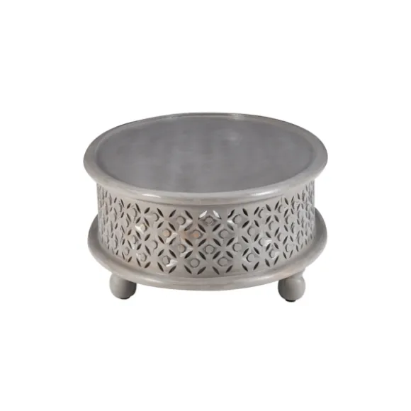 The Gray Wood Carved Medallion Coffee Table Features Intricate Lattice Cutouts That Add Visual Interest To Any Space. Th…