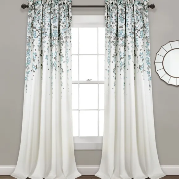 Add Movement To Your Living Room Space With This Beautiful Blue Weeping Flower Curtain Panel Set. These Curtains Will Ke…
