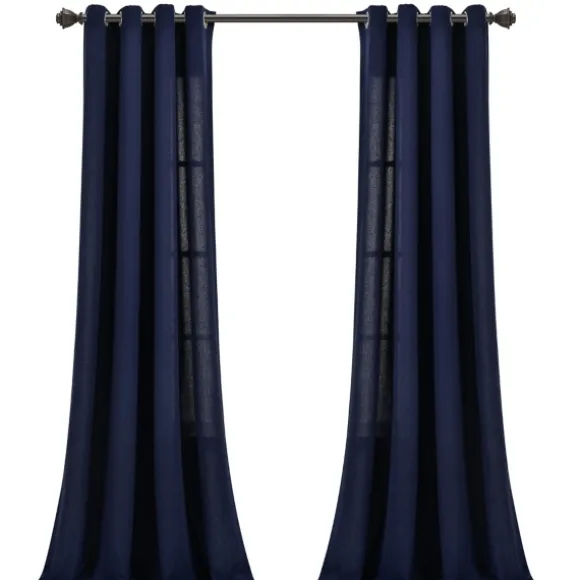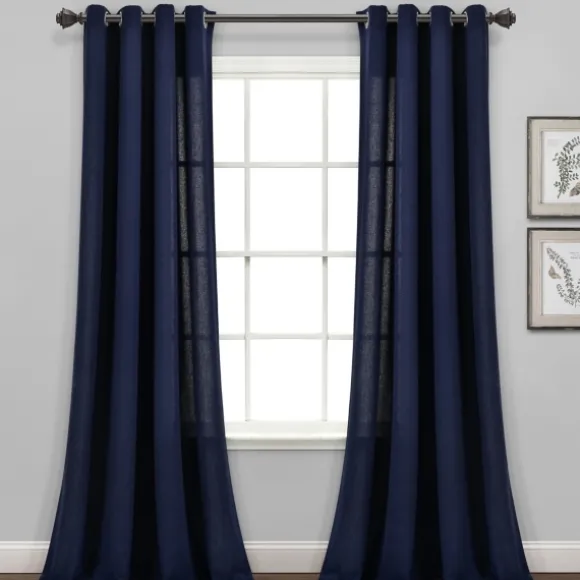 Add A Breezy, Beautiful Touch To Any Window With This Navy Faux Linen Curtain Panel Set. These Light, Cotton-Blend Curta…