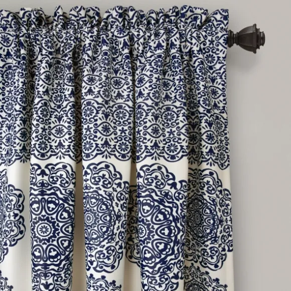 You’Ll Love Our Navy Medallion Stripe Curtain Panel Set. In This Delicate Pattern, A Drip Effect Is Used With A Beautiful Cascade Of Exquisite Medallion Motifs.Set Includes Two (2) Curtain Panels Each Panel Measures 52L X 95H In. Crafted Of Polyester Unlined, Room Darkening Curtain Panels Medallion Pattern Hues Of Blue And Ivory Features Curtain Rob Tab; Curtain Rod Not Included Care: Machine Wash Cold In A Mesh Bag With Similar Colors On Gentle Cycle. Use Non-Chlorine Bleach When Needed. Hang To Dry.This Item Is Available At Kirklands.Com Only, Not Available In Stores. Please Note: This Item Cannot Be Shipped To Apo/Fpo Addresses.
