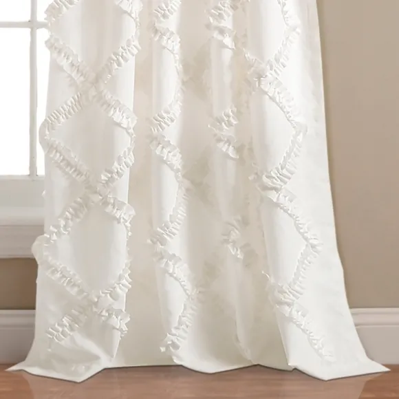Give Your Decor A Romantic Feel With This White Ruffle Diamond Curtain Panel Set. You’Ll Love The Texture Its Diamond Pa…