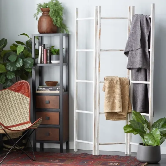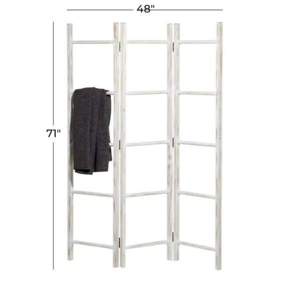 Organize Throw Blankets Or Bathroom Towels With A Stylish Flair! This White 3-Panel Hinged Ladder Will Bring A Modern Farmhouse Charm To Any Room Of Your Home.Ladder Measures 47.5L X 1.5W X 71.38H In.Crafted Of Wood Distressed White Finishfeatures Three (3) Hinged Panelsincludes Fifteen (15) Rungsfor Decorative Use Onlycare: Dust With A Soft, Dry Cloth.This Item Is Available At Kirklands.Com Only, Not Available In Stores. Please Note: This Item Cannot Be Shipped To Apo/Fpo Addresses.