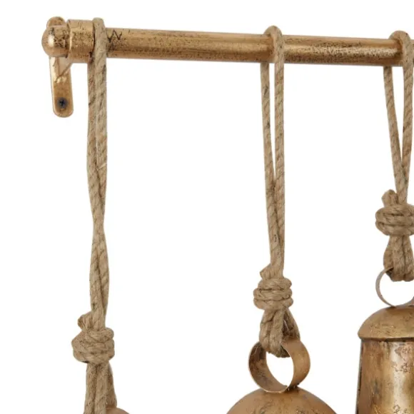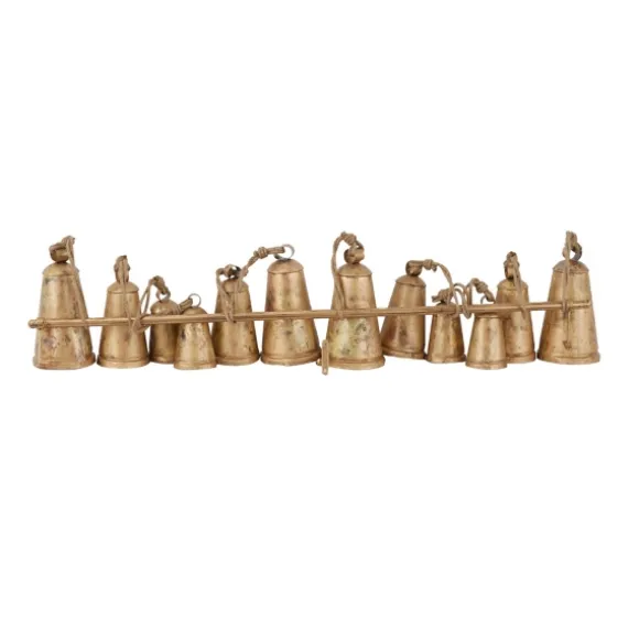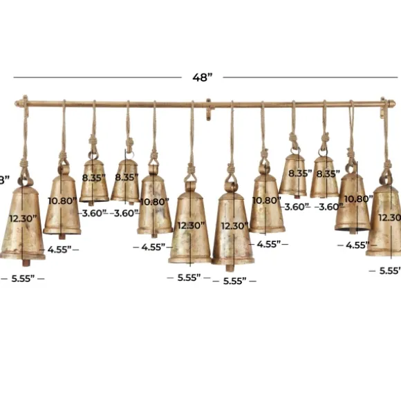 Ring In The Vintage Charm With This Aged Gold Triangle Bells Wall Plaque! Accented With Jute Rope And Wooden Clappers, This Collection Of Bells Is Perfect For Creating Your Own In-Home Sanctuary. Plaque Measures 48L X 5W X 28H In.Crafted Of Solid Iron With Wooden Clappershangs From Jute Ropeaged Gold Finishincludes Twelve (12) Bellsweight: 12.2 Lbs.Hangs From Back-Mounted Hardwarecare: Dust With A Soft, Dry Cloth.This Item Is Available At Kirklands.Com Only, Not Available In Stores. Please Note: This Item Cannot Be Shipped To Apo/Fpo Addresses.