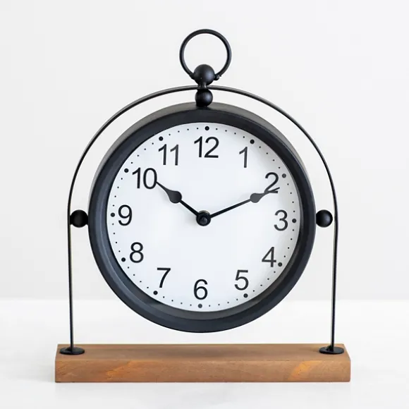 Kirkland’s Home Decorative Accents-Black Metal Frame With Wood Base Tabletop Clock