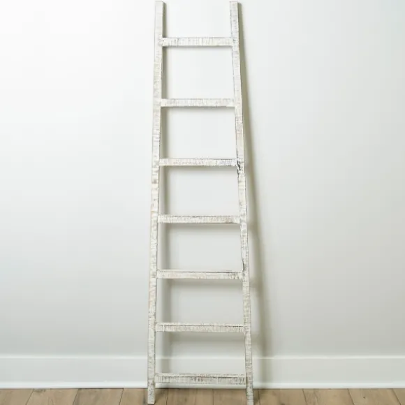 Our Distressed White Leaning Ladder Will Add A Rustic Style To Any Room. It Is Perfect For Storing And Displaying Your Favorite, Cozy Throw Blankets! Ladder Measures 18.25L X 1.25W X 66.25H In.Crafted Of Mango Woodwhite Wood Finishdistressed Lookdecorative Use Onlynot Intended For Commercial Usecare: Dust With A Soft, Dry Cloth.Contact Your Local Kirkland’S Store For Availability. Quantities And Selection May Vary By Location.