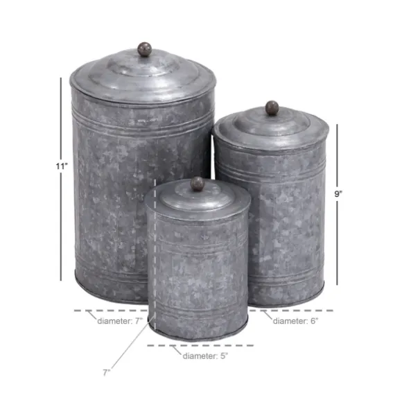 The Kitchen Is The Heart Of The Home – Dress It Up With This Charming Set! The Galvanized Metal Lid 3-Pc. Decorative Jar Set Is Both Functional And Effortlessly Stylish. Set Includes Three (3) Jarslarge Jar Measures 7L X 7W X 11H In.Medium Jar Measures 6L X 6W X 9H In.Small Jar Measures 5L X 5W X 7H In.Crafted Of Metalhues Of Graygalvanized Designcare: Dust With A Soft, Dry Cloth.This Item Is Available At Kirklands.Com Only, Not Available In Stores. Please Note: This Item Cannot Be Shipped To Apo/Fpo Addresses.
