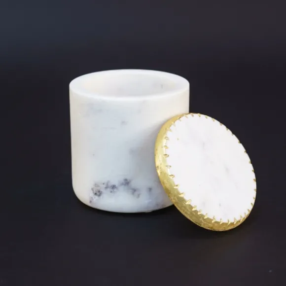 Store Your Belongings With The Elegant Style Of This Round White Marble And Gold Jar. It’S A Beautiful Way To Keep Cotton Balls And Other Accessories In Your Bathroom!Jar Measures 4.5L X 4W X 4H In.Crafted Of Marble White Marble Finishlid Features A Gold Edgecylinder Shapecare: Dust With A Soft, Dry Cloth.This Item Is Available At Kirklands.Com Only, Not Available In Stores. Please Note: This Item Cannot Be Shipped To Apo/Fpo Addresses.