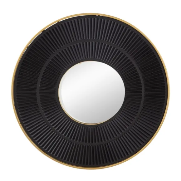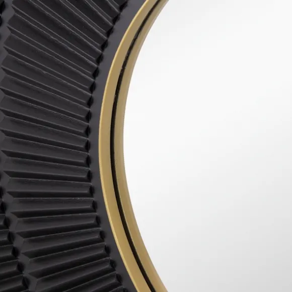 This Black And Gold Double Ribbed Wall Mirror Is The Perfect Addition To Your Contemporary Home! The Textured Wood Has A Handcrafted Look, And The Bronze Outer Frame Pulls It All Together For A Chic And Polished Accent Piece. Mirror Measures 1.2W X 31.5 In. In Diameterframe Crafted Of Wood And Metalblack Inner Frame Finish With A Bronze Outer Framefeatures A Double-Ribbed Designweight: 18 Lbs.Hangs From Back-Mounted Hardwarecare: Dust With A Soft, Dry Cloth. To Clean Mirror, Spray A Small Amount Of Glass Cleaner Onto A Lint-Free Cloth And Wipe Clean.This Item Is Available At Kirklands.Com Only, Not Available In Stores. Please Note: This Item Cannot Be Shipped To Apo/Fpo Addresses.