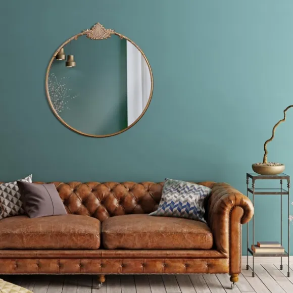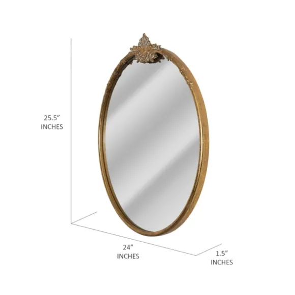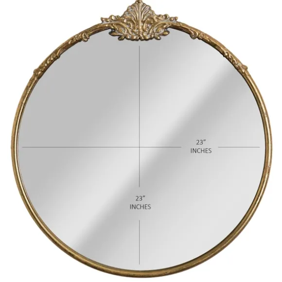 Create An Elegant Focal Point On Any Wall With This Antique Brass Metal Ornate Round Mirror. Boasting A Distressed Finish And Intricate Scroll Design, This Mirror Brings A Sense Of Vintage Maximalism To Your Space. Overall Mirror Measures 25L X 1.5W X 25.5H In.Crafted Of Metalbrass Finishround Shape With Ornate Scroll Design On Topdistressed Finishweight: 8.5 Lbs.Hangs From Back-Mounted Hardwarecare: Dust With A Soft, Dry Cloth. To Clean Mirror, Spray A Small Amount Of Glass Cleaner Onto A Lint-Free Cloth And Wipe Clean.This Item Is Available At Kirklands.Com Only, Not Available In Stores. Please Note: This Item Cannot Be Shipped To Apo/Fpo Addresses.Warning:Cancer And Reproductive Harm – For More Information Go Towww.P65Warnings.Ca.Gov .