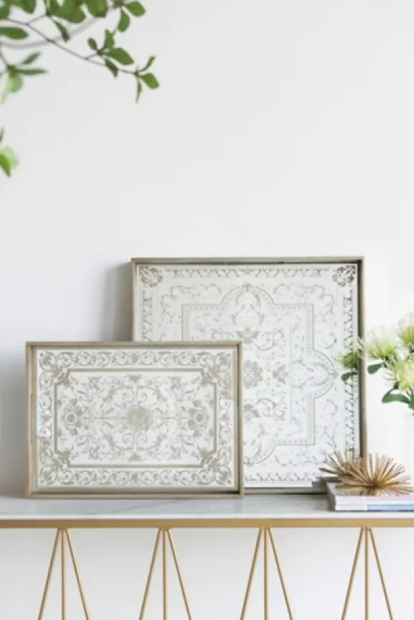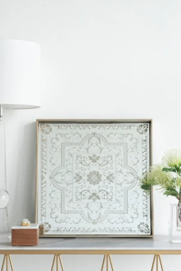 Display Your Favorite Items In Moroccan Fashion With This Cream Moroccan Pattern Tray With Gold Edges. You’Ll Love How Its Elegant Design Looks In Any Space! Tray Measures 20L X 20W X 2H In.Crafted Of Woodsquare Tray Shapefeatures A Mirrored Moroccan Patternaccented With Gold Edges And Handleshues Of Gold, Brown, And Creamfor Decorative Use Onlycare: Dust With A Soft, Dry Cloth.This Item Is Available At Kirklands.Com Only, Not Available In Stores. Please Note: This Item Cannot Be Shipped To Apo/Fpo Addresses.