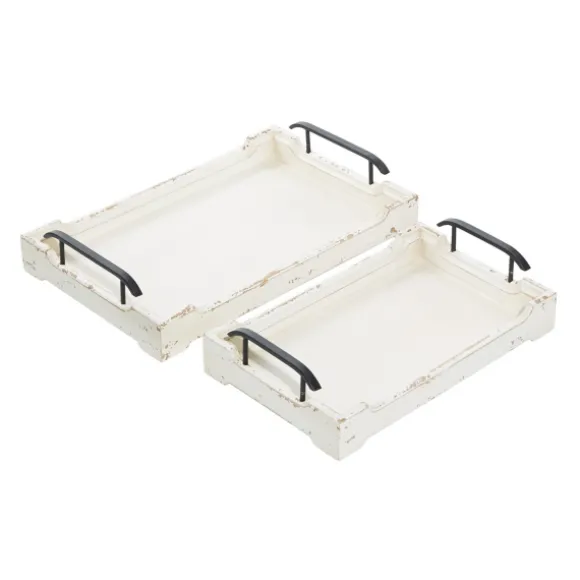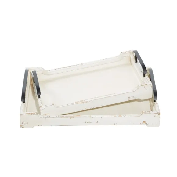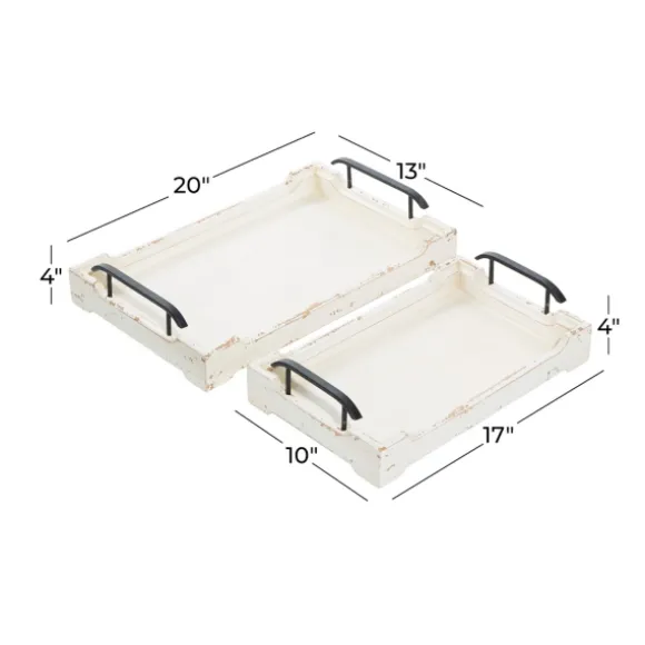 Complete Your Cottage With These Distressed Ivory Wood Trays. Each Of The Two Trays Are Chic With Their Carved Edges, Metal Handles, And Antique White Finish. Set Of Two (2) Trayslarge Tray Measures 20L X 13W X 4H In.Small Tray Measures 17L X 10W X 4H In.Crafted Of Wood And Metalrectangular Shapecarved Edgesembellished With Metal Handlesdistressed White Finishfor Decorative Use Onlytotal Weight: 4.98 Lbs.Care: Wipe Clean.This Item Is Available At Kirklands.Com Only, Not Available In Stores. Please Note: This Item Cannot Be Shipped To Apo/Fpo Addresses.