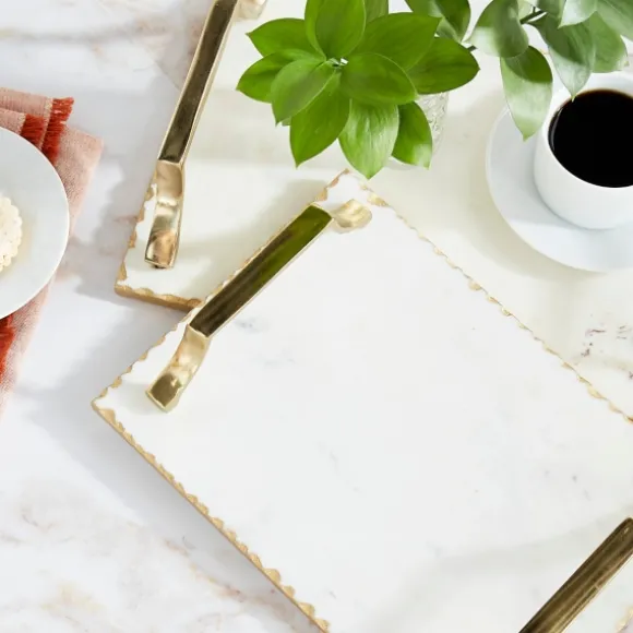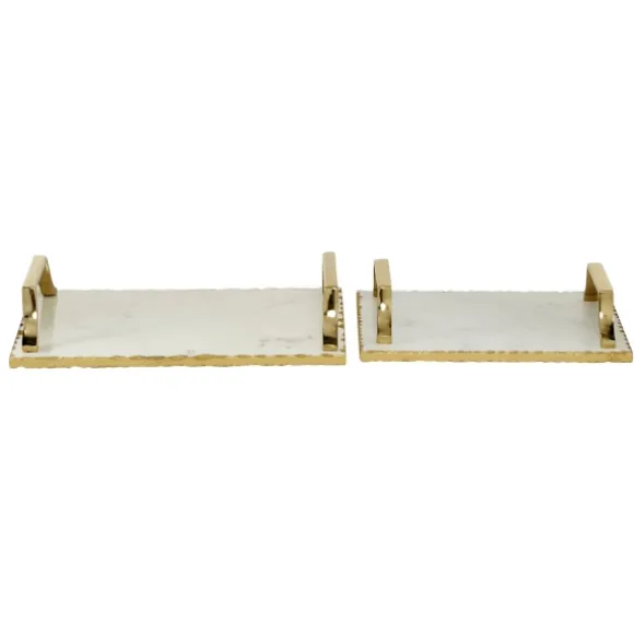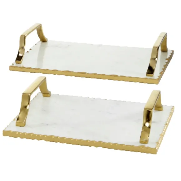 You Won’T Be Able To Look Away From These Gilded White Ceramic Trays. Your Food Has Never Looked Better On Porcelain White Trays Embellished With Gold. Set Of Two (2) Trayssmall Tray Measures 13L X 9 In. In Diametereach Tray Measures 16L X 10 In. In Diametercrafted Of Ceramic And Aluminumrectangular White Porcelain Basesembellished With Grooved Gold Finished Edges And Gold Side Handlestotal Weight: 15.18 Lbs.Care: Wipe Clean.This Item Is Available At Kirklands.Com Only, Not Available In Stores. Please Note: This Item Cannot Be Shipped To Apo/Fpo Addresses.Warning: Cancer And Reproductive Harm – For More Information Go Towww.P65Warnings.Ca.Gov .