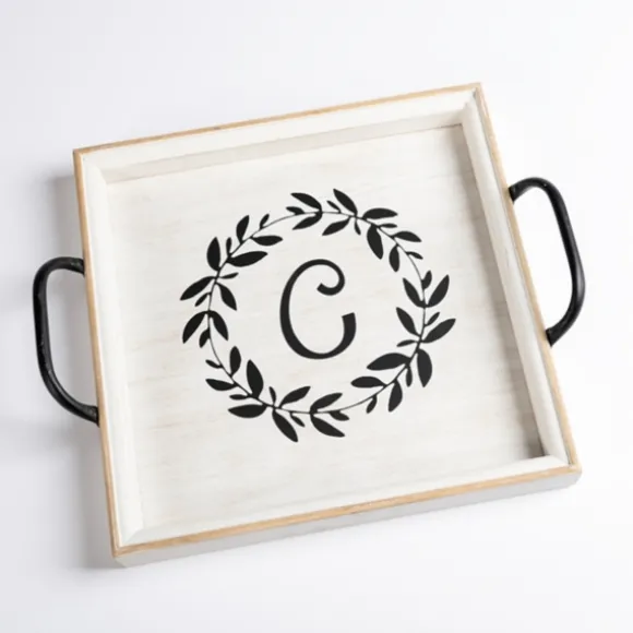 Add A Personal Flair To Your Coffee Table Or Kitchen Counter With This Monogram C White Wood Tray With Handles. It’S Lovely Way To Display Candles, Small Plants, And More!Tray Measures 16.75L X 14W X 3H In.Crafted Of Wood Whitewashed Finishfeatures The Monogrammed Letter “C” In A Botanical Wreathhues Of Black And Whiteincludes Two (2) Black Metal Handlesfor Decorative Use Onlycare: Dust With A Soft, Dry Cloth.Contact Your Local Kirkland’S Store For Availability. Quantities And Selection May Vary By Location. Sold In Stores Under Item Number 293569.