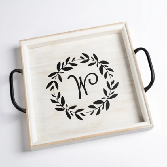 Add A Personal Flair To Your Coffee Table Or Kitchen Counter With This Monogram W White Wood Tray With Handles. It’S Lov…