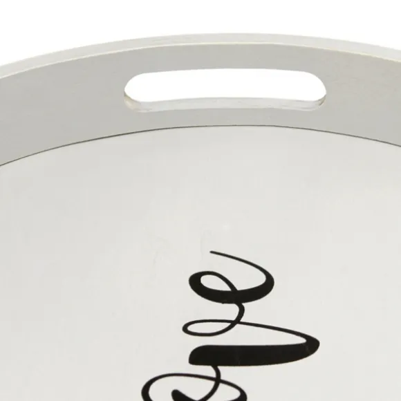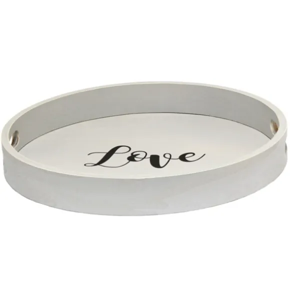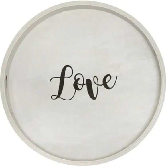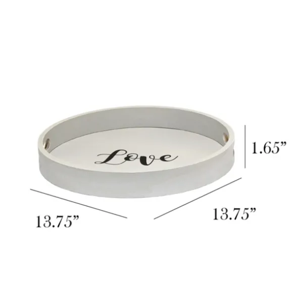 Display Decor And Trinkets Beautifully With This Round Gray Wood Love Tray. Its Cute, Simple Style Will Be A Great Accent In Any Space, From The Kitchen To The Bathroom!Tray Measures 1.65H X 13.75 In. In Diametercrafted Of Wood Features The Word “Love” In Black Lettersround Shapewhite Finishfeatures Two (2) Cutout Handlesfor Decorative Use Onlycare: Dust With A Soft, Dry Cloth.This Item Is Available At Kirklands.Com Only, Not Available In Stores. Please Note: This Item Cannot Be Shipped To Apo/Fpo Addresses.