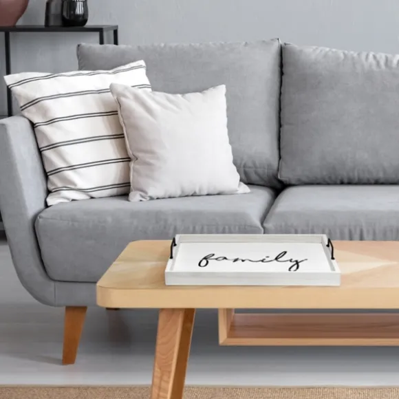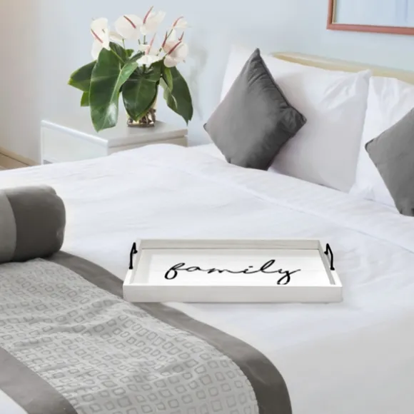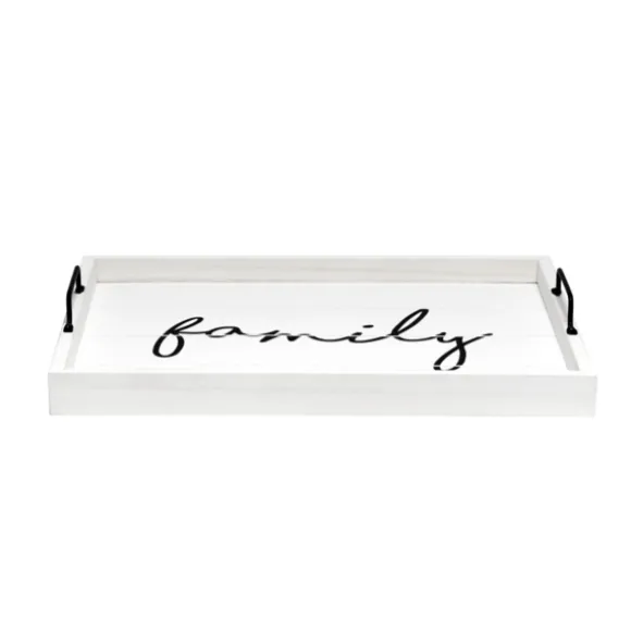 Kirkland’s Home Decorative Trays-Whitewash Family Wooden Tray