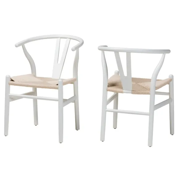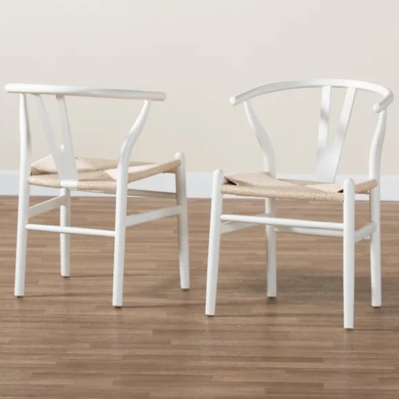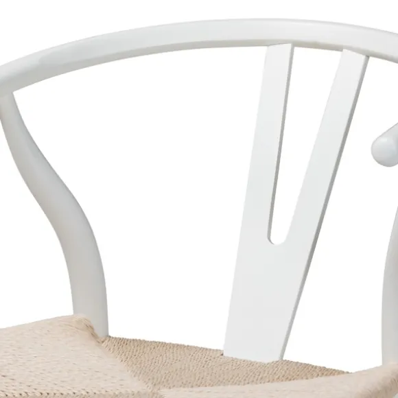 These White And Tan Wishbone Dining Chairs Will Bring A Refreshing Look To Your Table! With An Ergonomic Design And Charming Woven Seats, You Can Enjoy Casual Comfort And Beautiful Style During Every Meal! Set Includes Two (2) Chairs Each Chair Measures 21.7L X 21.3W X 29.7H In.; Seat Measures 17.1H In.Crafted Of Beech Wood And Ropewhite Frame Finishlight Tan, Woven Rope Seatsfeature A Rounded Wishbone Backergonomic Armrestsnot Intended For Commercial Usecare: Dust With A Soft, Dry Cloth.This Item Is Available At Kirklands.Com Only, Not Available In Stores. Please Note: This Item Cannot Be Shipped To Apo/Fpo Addresses.