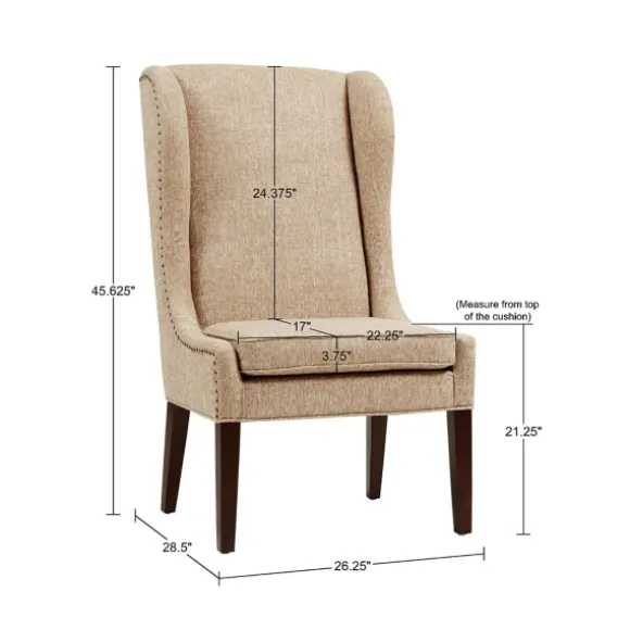 Dine In Style With Our Stunning Beige High Wingback Nailhead Trim Dining Chair. You’Ll Love The Luxurious Look Of The Eye-Catching Nailhead Trim Detailing. Chair Measures 26.25L X 28.5W X 45.625H In.; Seat Measures 21.25H In.Crafted With A Wood Composite Frameespressofinishupholstered In 73% Polyester And 27% Acrylic Beige Fabricfeatures High Back Design And Bronze Nail Head Detailingweight: 34 Lbs.Weight Capacity: 300 Lbs.Some Assembly Requirednot Intended For Commercial Usecare: Spot Clean Only.This Item Is Available At Kirklands.Com Only, Not Available In Stores. Please Note: This Item Cannot Be Shipped To Apo/Fpo Addresses.
