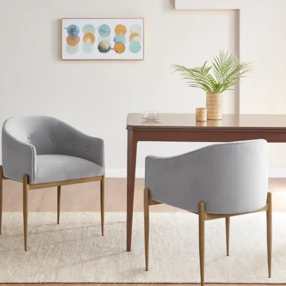 Sophistication And Comfort Go Hand-In-Hand With Our Light Gray Velvet Button Dining Chairs! You’Ll Love The Sleek, Low-Back Design And The Timelessly Modern Style. Set Includes Two (2) Dining Chairseach Chair Measures 26L X 22.5W X 32H In.; Seat Height: 19.5 In.Crafted With A Plywood Frame And Metal Legsupholstered In 100% Polyester Velvet With A Foam Fillgold Leg Finish With Gray Upholsteryfeatures A Low-Back Designaccented With Button-Tufted Detailsweight Capacity: 300 Lbs. Eachassembly Requirednot Intended For Commercial Usecare: Wipe With A Soft, Damp Cloth And Mild Soap. Clean Spills Immediately.This Item Is Available At Kirklands.Com Only, Not Available In Stores. Please Note: This Item Cannot Be Shipped To Apo/Fpo Addresses.