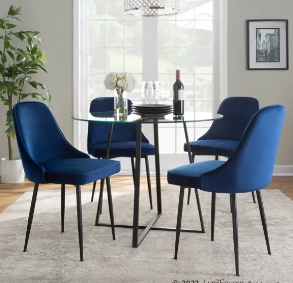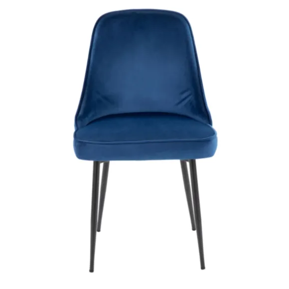 These Blue Upholstered Metal Dining Chairs Combine Comfort And Style. Featuring A Classic, Curved Style, They’Re Perfect For Setting Around Your Table. Plus, Their Neutral Color Is Sure To Go With Your Decor. Set Includes Two (2) Dining Chairseach Chair Measures 23.5L X 20W X 33.25H In.; Seat Measures 19.5H In.Crafted With A Metal Frameblack Leg Finishupholstered In Blue Polyester Fabriccurved Designweight Capacity: 250 Lbs.Assembly Requirednot Intended For Commercial Usecare: Wipe Clean With A Damp Cloth.This Item Is Available At Kirklands.Com Only, Not Available In Stores. Please Note: This Item Cannot Be Shipped To Apo/Fpo Addresses.