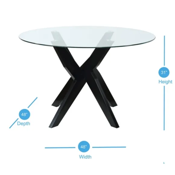 The Black Wood And Glass X-Base Dining Table Will Bring An Air Of Modern Elegance To Your Dining Room. Featuring An Architectural Pedestal Base, It Makes A Striking Statement Piece For Your Home. Table Measures 30H X 48 In. In Diametercrafted Of Rubberwood And Tempered Glassblack Base Finishclear Glass Tabletop Finishx-Shaped, Architectural Pedestal Baseround Tabletop Shapeassembly Requirednot Intended For Commercial Usecare: Dust With A Soft, Dry Cloth.This Item Is Available At Kirklands.Com Only, Not Available In Stores. Please Note: This Item Cannot Be Shipped To Apo/Fpo Addresses.Warning:Cancer And Reproductive Harm – For More Information Go Towww.P65Warnings.Ca.Gov .