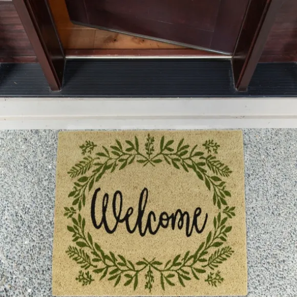 Make Your Patio Look Invitingly Chic With The Help Of This Green Wreath Welcome Coir Doormat! You’Ll Love How The Simple, Leafy Design Complements Any Space. Doormat Measures 29L X 17.8W X 0.5H In.Crafted Of Coir With Non-Slip Pvc Backingfeatures The Word “Welcome”Accented With A Leafy Wreath Borderhues Of Natural Tan, Green, And Blacksafe For Outdoor Usecare: Shake Briskly To Clean. Spot Clean As Needed. Flammable; Should Not Be Used Near Ignition. Keep Mat In Shaded Area To Avoid Contact With Water. Staining May Occur If Placed On Damp Or Wet Surface.This Item Is Available At Kirklands.Com Only, Not Available In Stores. Please Note: This Item Cannot Be Shipped To Apo/Fpo Addresses.
