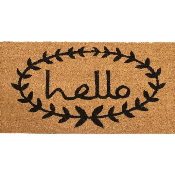 Our Natural And Black Laurel Hello Doormat Will Greet Your Guests As Soon As They Walk Onto Your Porch. You Will Love How Its Laurel Accent Looks! Doormat Measures 72L X 36W X 0.6H In. Crafted Of Coir And Vinyl Features The Word “Hello” In Cursive Lettering Accented With A Decorative Laurel Includes Vinyl Backing To Help Prevent Movement Hues Of Tan And Black Colorfast And Weather Tolerant Safe For Outdoor Use Care: Hose Clean.This Item Is Available At Kirklands.Com Only, Not Available In Stores. Please Note: This Item Cannot Be Shipped To Apo/Fpo Addresses.
