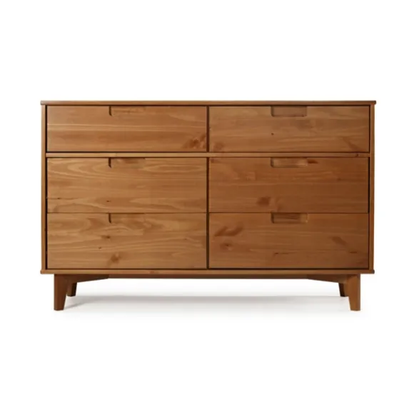 The Unique And Rustic Look On This Caramel Mid-Century Modern 6-Drawer Dresser Give It A Farmhouse Look You’Ll Love. The Large Sized Drawers Will Give You Room To Fit All Your Needs.Dresser Measures 52L X 16W X 33H In. Crafted Of Solid Pine And Wood Composite Stained Caramel Finish Features Six (6) Drawers For Storage Cut-Out Pull Handle Hardware Mid-Century Modern Angled Legs Full Assembly Required Not Intended For Commercial Use Care: Dust With A Soft, Dry Cloth. Avoid Using Chemical And Abrasive Cleaners As They May Damage The Finish.This Item Is Available At Kirklands.Com Only, Not Available In Stores. Please Note: This Item Cannot Be Shipped To Apo/Fpo Addresses.