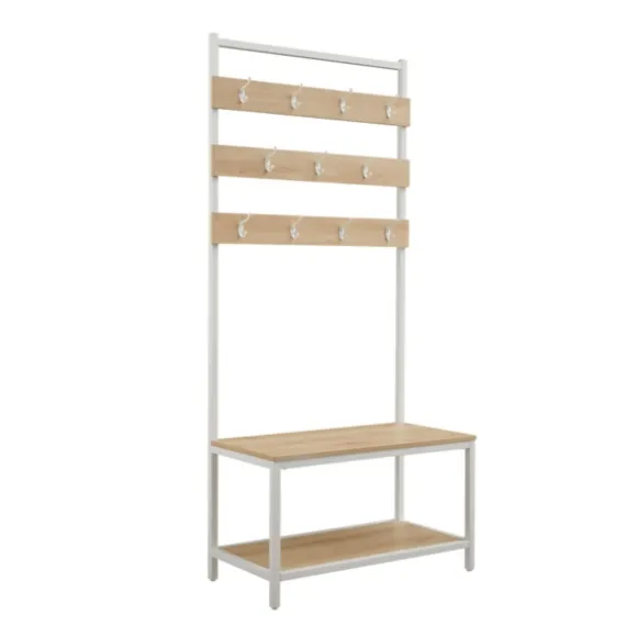 Elevate Your Entryway With This Brown And White Wood Bench Hall Tree. Featuring An Abundance Of Hooks And A Lower Shelf,…