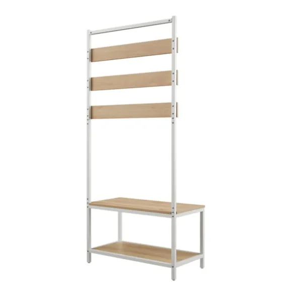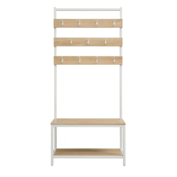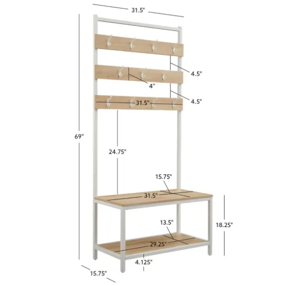 Elevate Your Entryway With This Brown And White Wood Bench Hall Tree. Featuring An Abundance Of Hooks And A Lower Shelf, It’S Ideal For Storing Coats, Hats, Shoes, And More! Plus, Its Bench Provides A Convenient Seat Or Place For Bags! Hall Tree Measures 31.5L X 15.75W X 69H In.; Seat Measures 18.25H In.Crafted Of Metal And Wood Compositewhite Frame Finishnatural Wood Finishfeatures A Bench And Lower Shelfalso Features Eleven (11) Double Hooksbench Weight Capacity: 225 Lbs.Shelf Weight Capacity: 50 Lbs.Hook Weight Capacity: 15 Lbs. Eachassembly Requirednot Intended For Commercial Usecare: Wipe Clean With Adamp Cloth.This Item Is Available At Kirklands.Com Only, Not Available In Stores. Please Note: This Item Cannot Be Shipped To Apo/Fpo Addresses.
