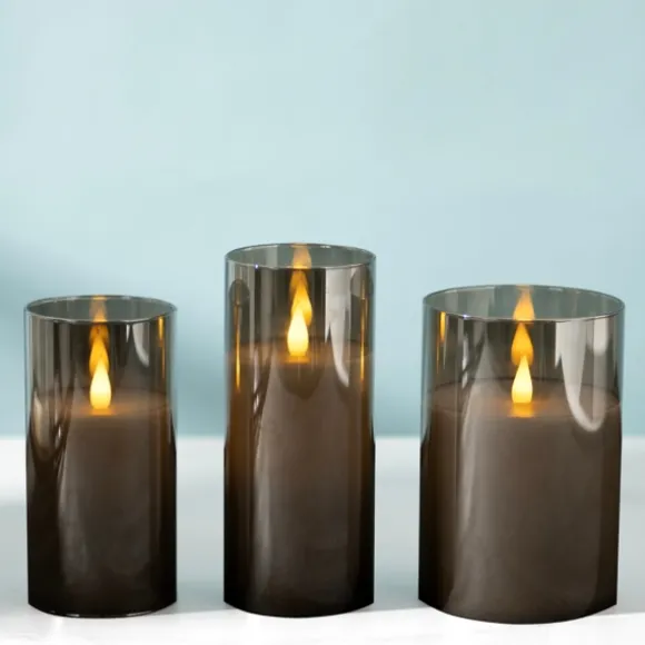 Nothing Will Elevate The Ambiance Of Your Space Quite Like The Glow Of A Candle! This Gray Led Soft Flame Glass Pillar C…