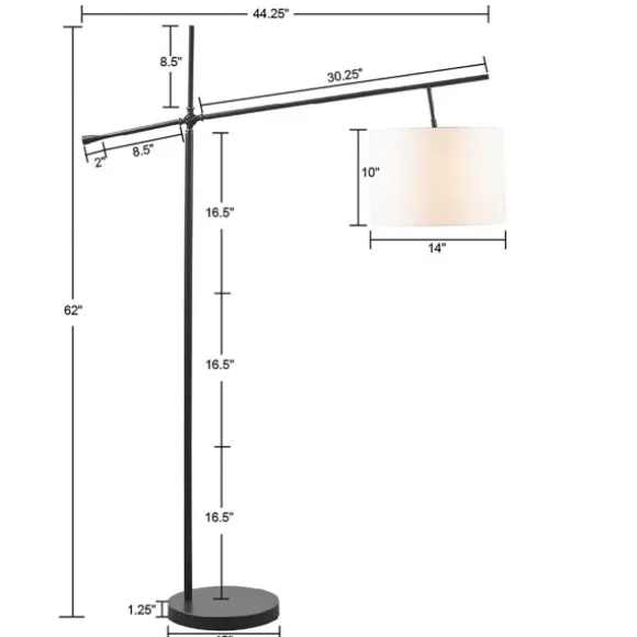Add A Contemporary Touch To Any Space With Our Black Adjustable Arm Modern Floor Lamp. You’Ll Love How It Allows You Customize Your Light Exactly How You Want It. Lamp Measures 44.25L X 14W X 62H In.Crafted Of Ironoil-Rubbed Bronze Finish Straight Base With Adjustable Arm Hardback Drum Shade In Cream 35% Cotton And 65% Polyester Fabricshade Measures 10H X 14 In. In Diametersocket Accommodates A 60-Watt, Type-A Bulbfeatures A Black, 8 Ft. Plug-In Cord; Features A Convenient On/Off Foot Switchcare: Dust With A Soft, Dry Cloth. Do Not Exceed Specified Wattage.This Item Is Available At Kirklands.Com Only, Not Available In Stores. Please Note: This Item Cannot Be Shipped To Apo/Fpo Addresses.