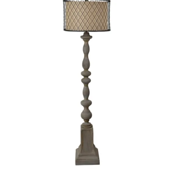 Give Your Home A Warm Glow With This Gray Distressed Metal Encased Shade Floor Lamp. Its Decorative Base And Metal Shade Frame Make It Such A Unique Piece. Lamp Measures 60H In.Crafted Of Resinrusted Stone Finishturned Basehardback Drum Shade In Tan Linenshade Encased In A Cage-Style Metal Frameshade Measures 11H X 17 In. In Diametersocket Accommodates A 150-Watt, Type-A Bulbfeatures A Brown, Plug-In Cordcare: Dust With A Soft, Dry Cloth. Do Not Exceed Specified Wattage.This Item Is Available At Kirklands.Com Only, Not Available In Stores. Please Note: This Item Cannot Be Shipped To Apo/Fpo Addresses.
