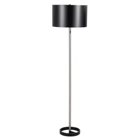 Brighten Up Your Space With This Nickel And Black Metal Shade Floor Lamp. Its Art Deco Style Will Add A Unique, Retro Style To Any Room Of Your Home! Lamp Measures 60H In.Crafted Of Metalnickel Finish With Black Baseslim, Straight Baseart Deco Style Black Metal Drum Shadeshade Measures 9H X 15.5 In. In Diameterfeatures A Pull-Chain Switchaccommodates Two (2) 60-Watt Bulbsfeatures A Plug-In Cord Care: Dust With A Soft, Dry Cloth. Do Not Exceed Specified Wattage.This Item Is Available At Kirklands.Com Only, Not Available In Stores. Please Note: This Item Cannot Be Shipped To Apo/Fpo Addresses.
