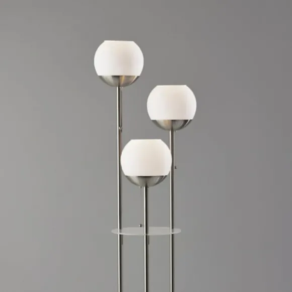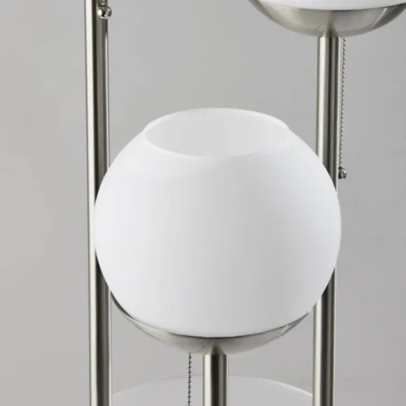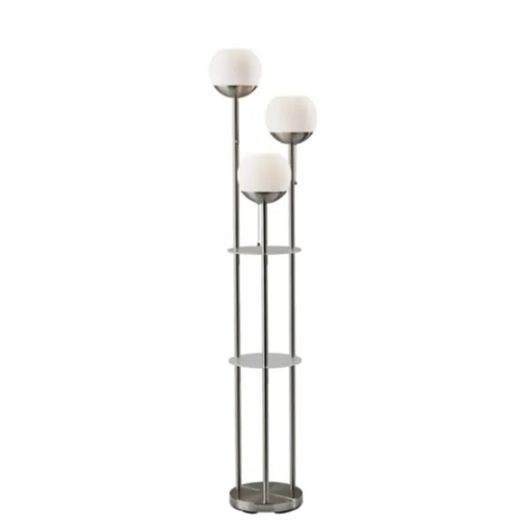 Light Up Any Corner Of Your Home With The Sleek Sophistication Of Our Silver Globe 3-Light Shelf Floor Lamp! You’Ll Love How The Unique Build Of This Piece Complements Your Modern Or Industrial Style. Lamp Measures 63H In.Crafted Of Metal, Acrylic, And Glasssilver Finishstaggered, Three-Light Designeach Light Can Operate Independentlyincludes Two (2) Frosted Shelvesround, White Glass Shadeseach Shade Measures 10H X 10 In. In Diameteraccommodates Three (3) 40-Watt, Type A Bulbspull Chain Switchesfeatures A Clear, 60-Inch Plug-In Cordetl Listedcare: Dust With A Soft, Dry Cloth. Do Not Exceed Specified Wattage.This Item Is Available At Kirklands.Com Only, Not Available In Stores. Please Note: This Item Cannot Be Shipped To Apo/Fpo Addresses.