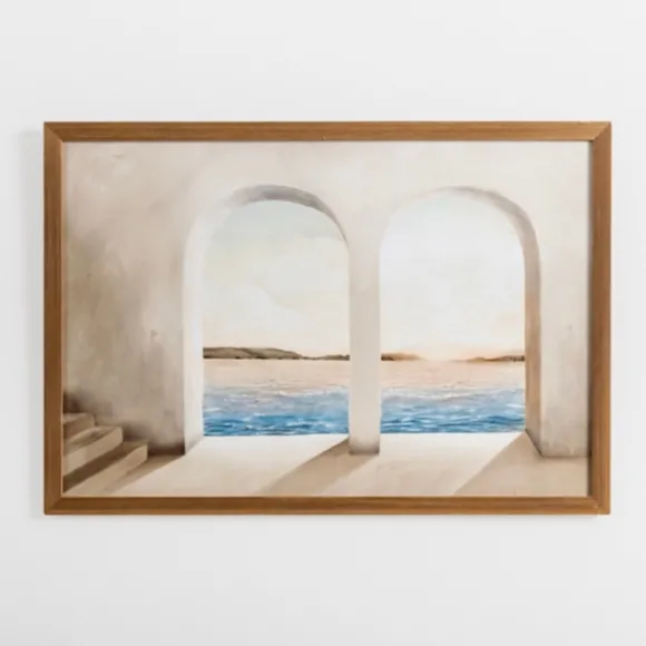 Bring The Grecian Seaside Into Your Home With This Arched Coastal Viewpoint Framed Art Print! The Unique Brushtrokes And Neutral Colors Are Sure To Add Some Serenity To Any Space. Art Measures 37.9L X 0.6W X 25.9H In.Print Mounted On Board And Wrapped In A Framewalnut Frame Finishfeatures A Coastal Landscape Form Behind Arched Doorways As Subjecthues Of Ivory, Brown, Blue, And Orangehangs From Back-Mounted Hardwarecare: Dust With A Soft, Dry Cloth. Avoid Exposure To Heat, Direct Sunlight, And Moisture.Contact Your Local Kirkland’S Store For Availability. Quantities And Selection May Vary By Location.