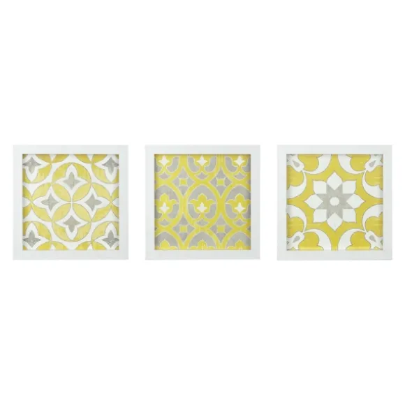 These Yellow Tuscan Framed Wood Art Prints Will Look Lovely Hanging In Your Bedroom. You’Ll Love The Bright Italian Flair These Plaques Bring To Your Space.Set Includes Three (3) Framed Wood Art Prints Each Print Measures 12L X 1.25W X 12H In. Frame Crafted Of Wood White Frame Finish Printed On Board Features Geometric Tile Design Hues Of Yellow, White, And Gray Weight: 5.61 Lbs. Hangs From Back-Mounted Hardware Care: Dust With A Soft, Dry Cloth.This Item Is Available At Kirklands.Com Only, Not Available In Stores. Please Note: This Item Cannot Be Shipped To Apo/Fpo Addresses.